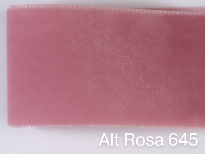 Swiss quality velvet ribbon. 10 shades of pink with a delicately shimmering depth of color in 7 widths. Free of harmful substances.