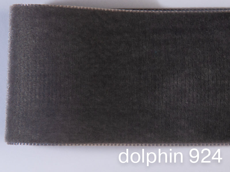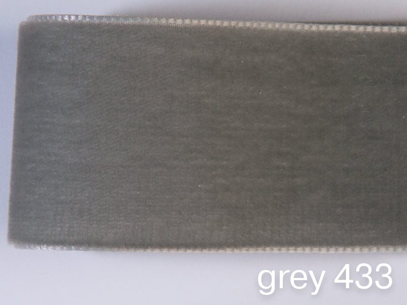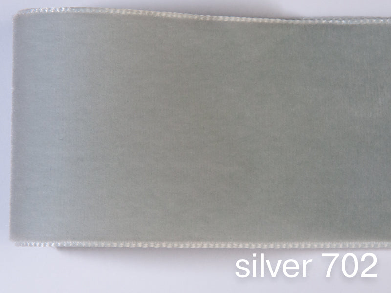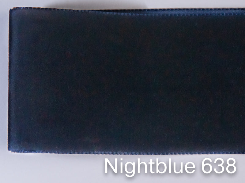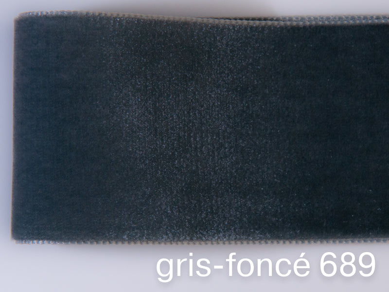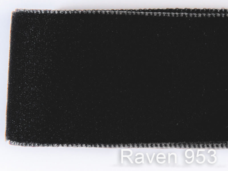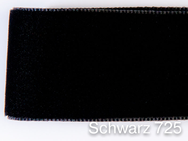 Nastro di velluto di qualità svizzera. 7 tonalità dal grigio al nero con profondità di colore delicatamente scintillanti in 7 larghezze. Privo di sostanze nocive.