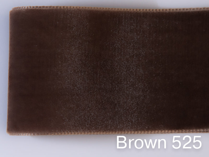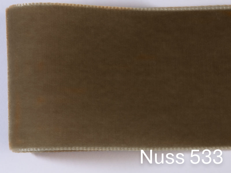 Braunes Samtband in den Nuancen: Dunkelbraun, Hellbraun, Beige, Nussbraun, Erdfarben, Kaffeebraun, Schokobraun, Graubraun, Havanna, Karamell, Kastanie, Rotbraun, Rostbraun und vielen weiteren Farben erhältlich: alle Samtbänder.