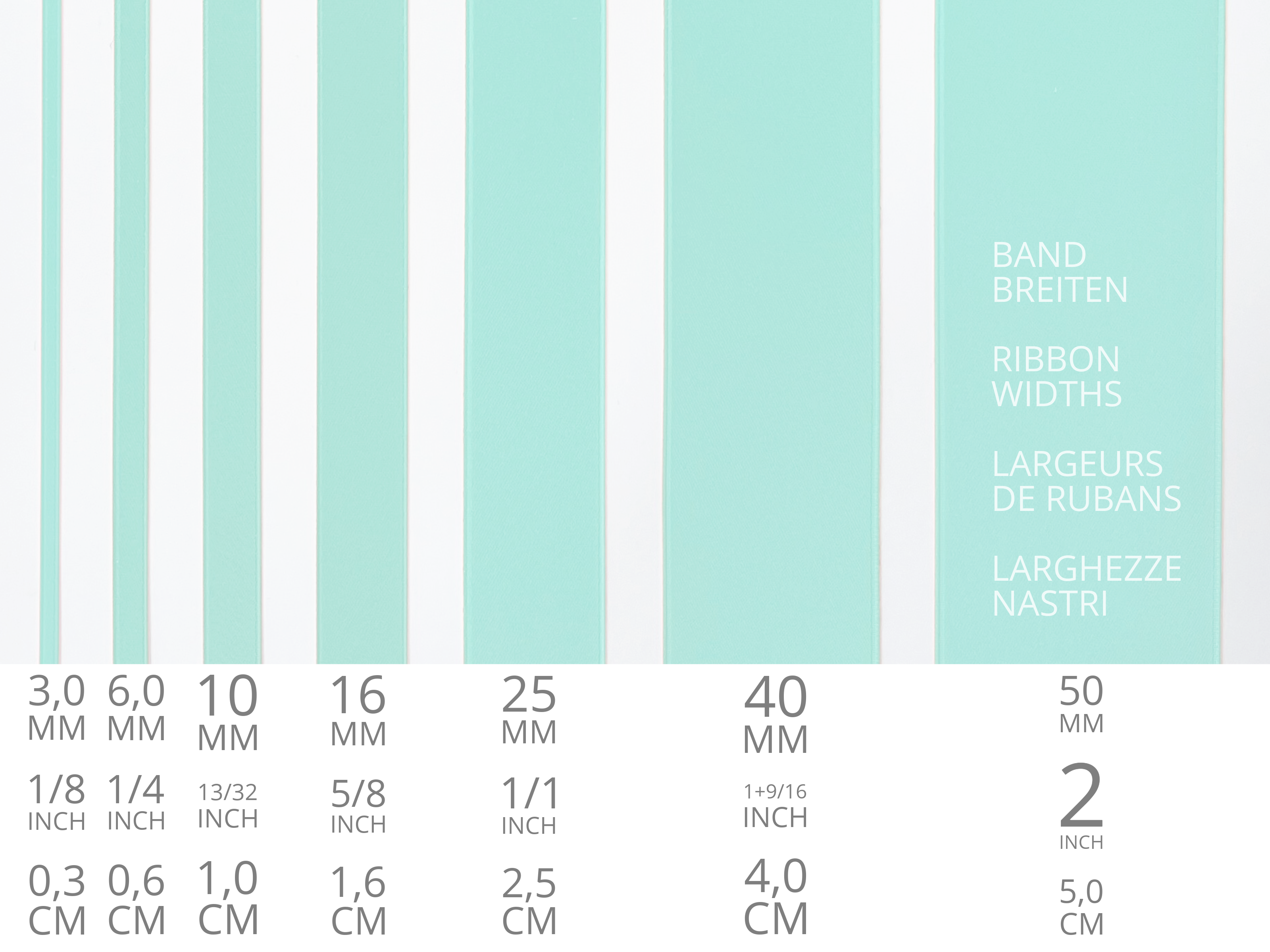 FARBMUSTER Die Farben der Bänder erscheinen in verschiedenen Lichtsituationen unterschiedlich. Alle Fotos wurden in einem Fotostudio erstellt, können aber auf Bildschirmen von Computern und Smartphones verfälscht angezeigt werden. Meterware ist generell vom Umtausch ausgeschlossen. Um den perfekten Farbton für Ihr Projekt zu finden, bestellen Sie bitte FARBMUSTER hier.