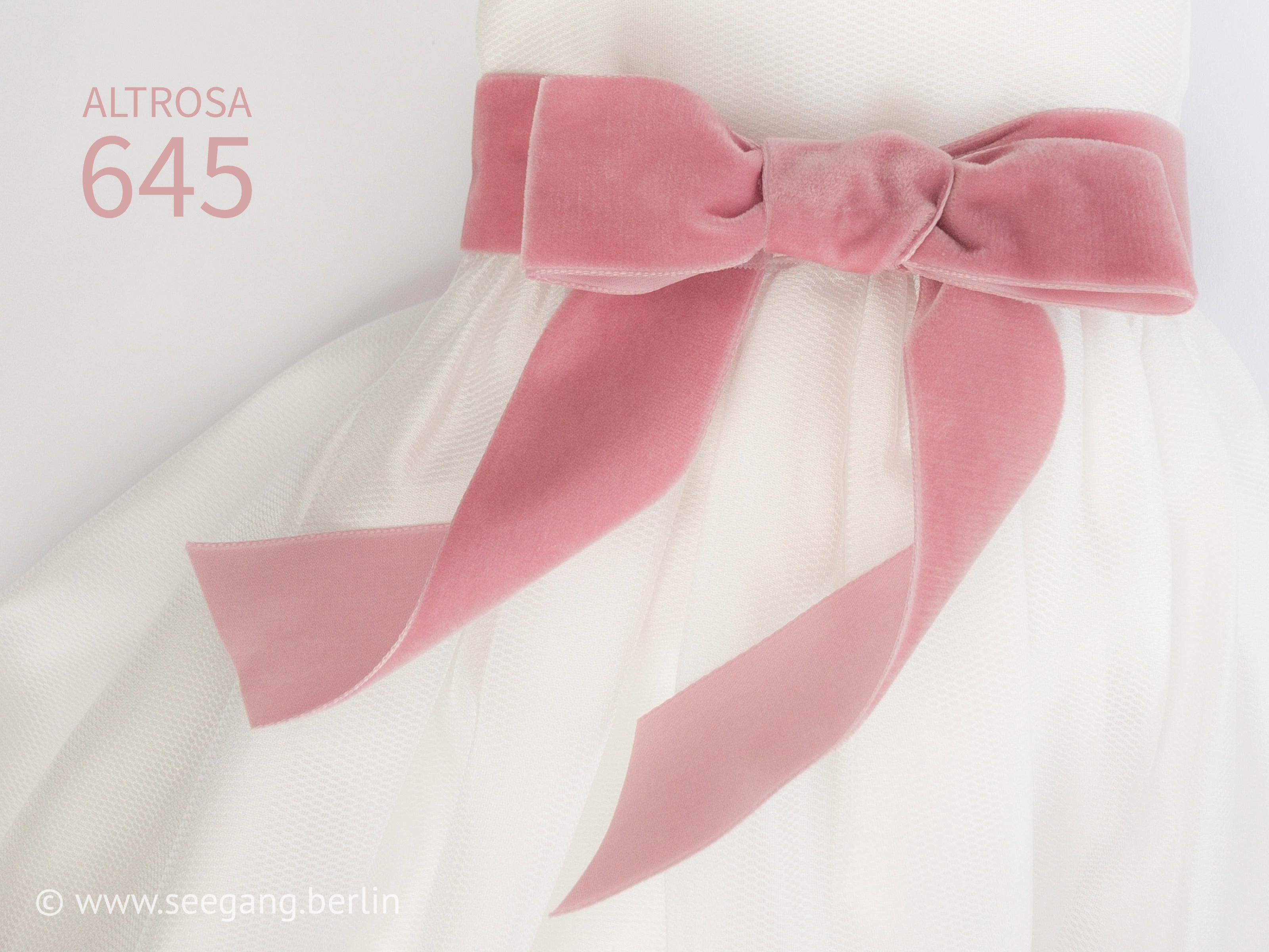 Luxus Samtgürtel mit perfekter Schleife in Schweizer Qualität in rosafarbenen Nuancen: Rosa, Altrosa, Blush, Baby Rosa, Mandelblüte, Rosé und in vielen anderen Farben und Breiten erhältlich.